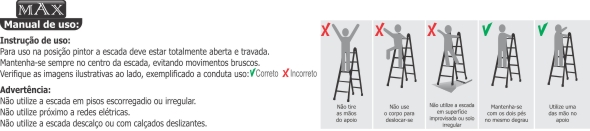 Conteúdo da Embalagem: Patamar, Alças de segurança, Degraus especiais estriados antiderrapantes e Sapatas de borracha.