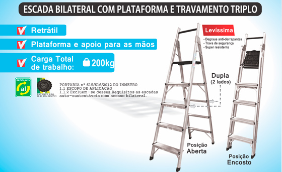 Diferencial: Um dos diferenciais desse produto é que essa escada permite o uso de ambos os lados, diferentemente dos produtos oferecidos pelos concorrentes. Além de ter mais funcionalidade, esse produto foi produzido para ter maior resistência e durabilidade.