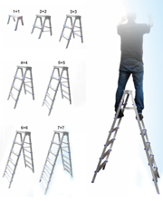 Produto com degrau duplo em alumínio com antiderrapante. Indicado para quem está buscando facilidade no armazenamento, flexibilidade nos trabalhos e um produto de alta qualidade.